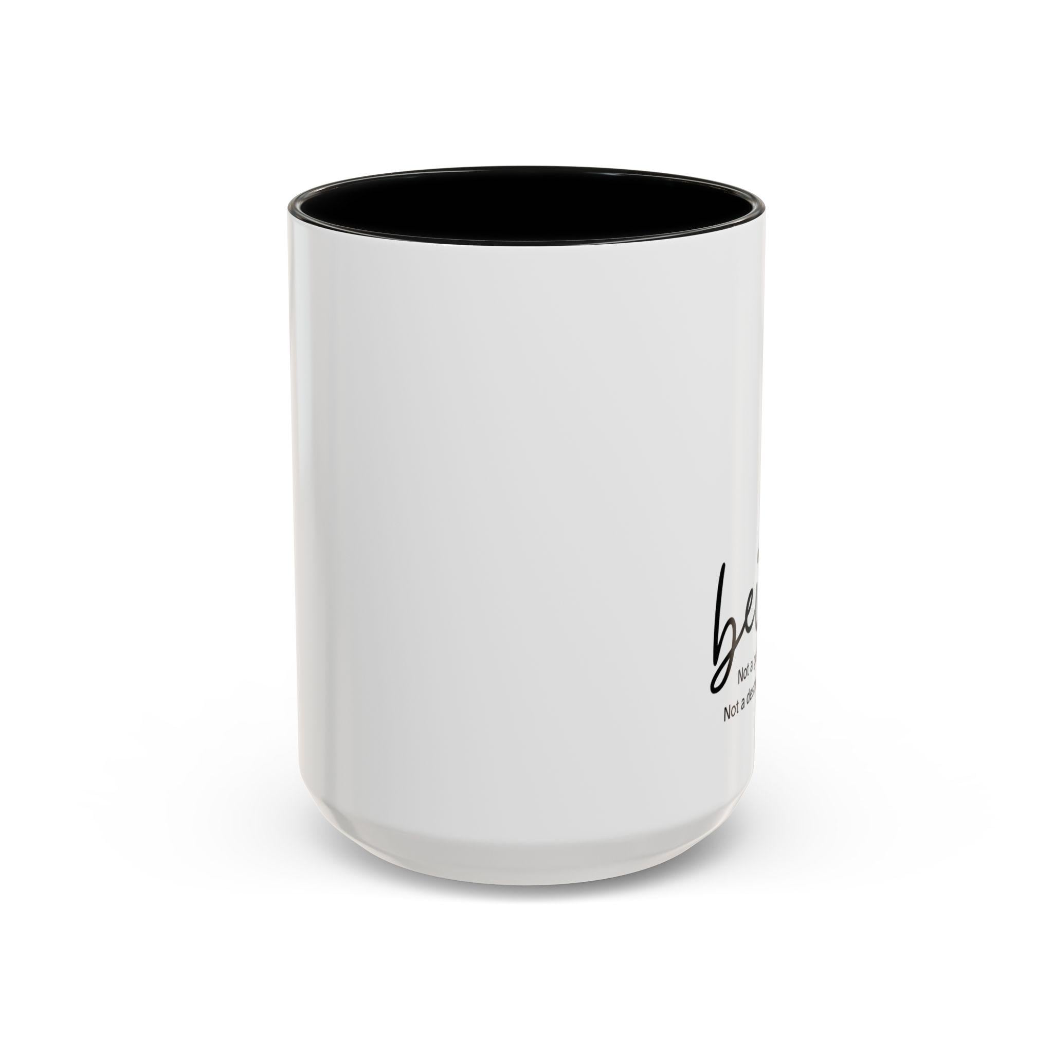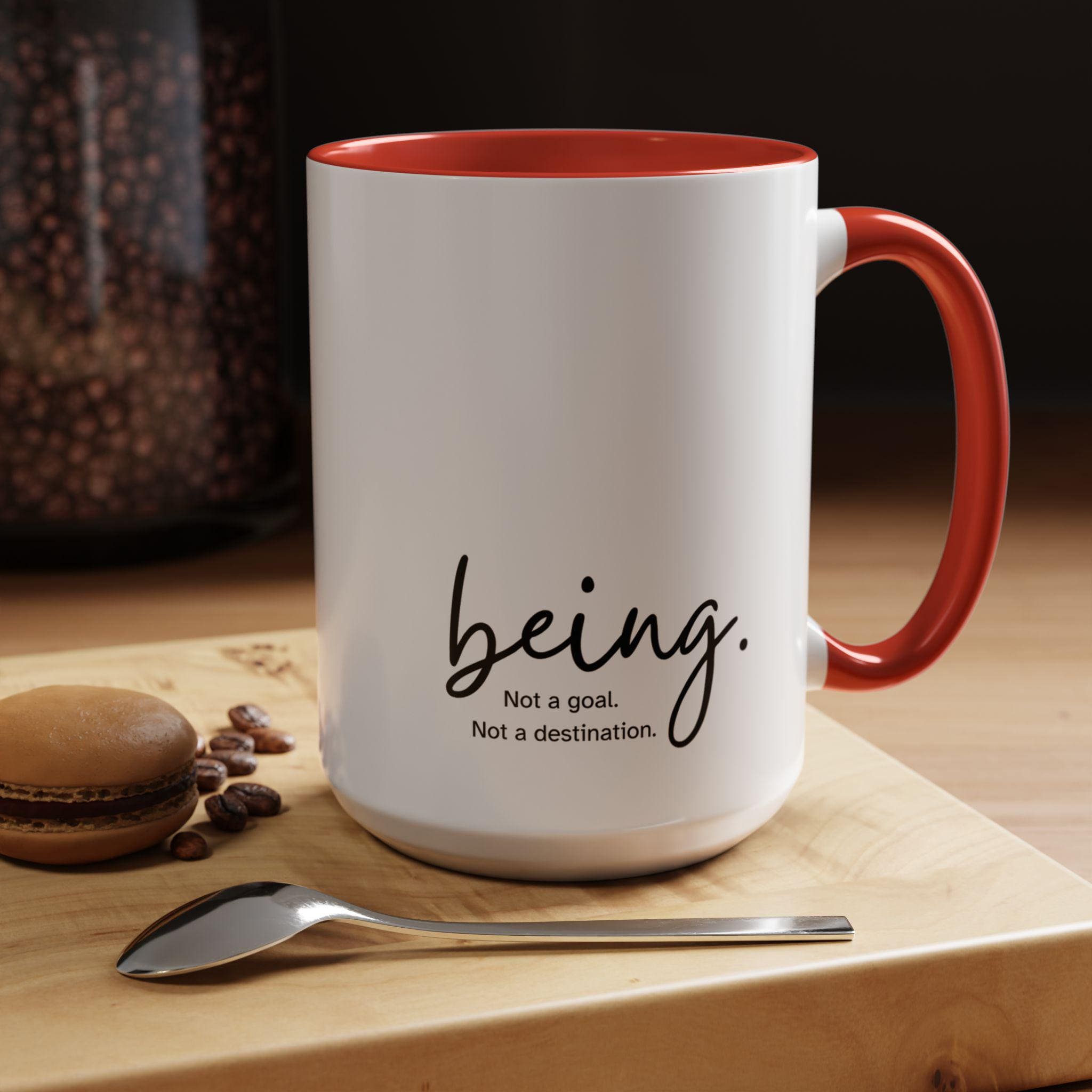A warm, minimalist ceramic mug that speaks gently in small, confident phrases. Clean white walls meet a bold colored interior and handle — a calm contrast that frames your morning ritual. The simple script on the side reads like a quiet reminder during a busy day: pause, breathe, keep going. This mug lives on desks and kitchen counters, cradling coffee, tea, or whatever fuels the next step. Durable gloss and vibrant printing keep the message clear as the days roll by.